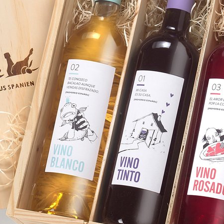 Geschenk-fuer-Weinliebhaber-Weingeschenk-SPANIEN-Je-1-Flasche-Rotwein-Weisswein-Rosewein-aus-DO-Utiel-Requena-Geschenkfertig-verpackt-in-rustikaler-Weinkiste-aus-Holz