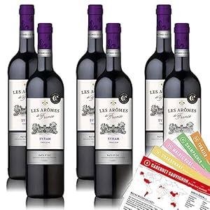 Les Aromes de France Syrah, Pays d’Oc, trocken, im sortenreinen 6 Flaschen (6×0,75l) Weinpaket. Dieses Weinpaket enthält 6 VINOX Weinkarten mit Tipps vom Sommelier.