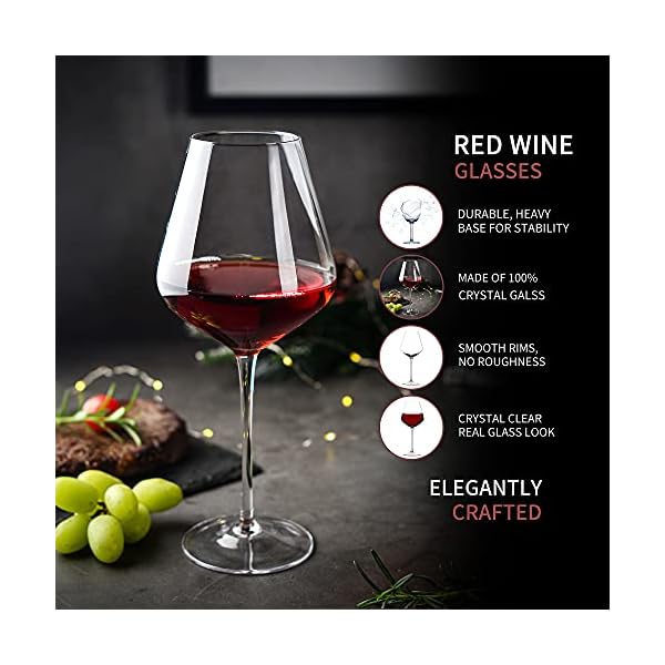 🍷Perfektes Design für die Weinprobe – Weinliebhaber wissen, wie wichtig Glas für die Verkostung eines ausgezeichneten Rotweins ist und es dem Wein ermöglicht, alle seine Nuancen und seinen Charakter auszudrücken. Diese Weingläser haben ein recht großes Volumen von 700ML mit einer großen Belüftungsfläche dank des Durchmessers von 10,5 cm, aber einer eher schmalen Öffnung, die ideal ist, um die Nase eines guten Rotweins zu genießen.