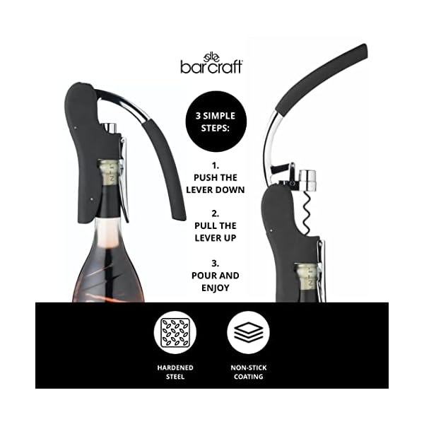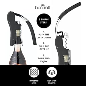 Was Sie bekommen – BarCraft Luxus-Hebelkorkenzieher mit elegantem Design zum Öffnen aller Rot-, Weiß- und Roséweinflaschen