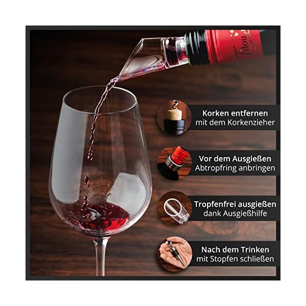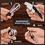 ✔ PROFESSIONELLES SET: Unser hochwertiges Weinöffnerset enthält alles, was Sie für den perfekten Weinabend benötigen: einen Korkenzieher, einen Abtropfring, einen Ausgießer und einen Flaschenverschluss. Ein Muss für jeden Weinliebhaber und Weintrinker.
