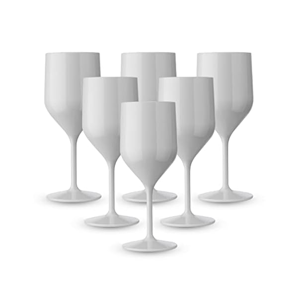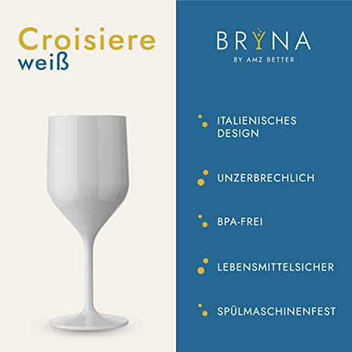BRYNA – 6-teiliges Set Croissants Gläser 25 Cl aus Polycarbonat (Hartkunststoff), 100% italienisches Design, Unzerbrechliche Gläser, wiederverwendbare und spülmaschinenfeste Weingläser, Weiß