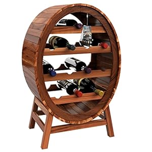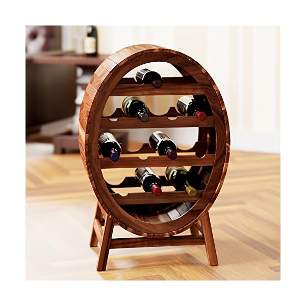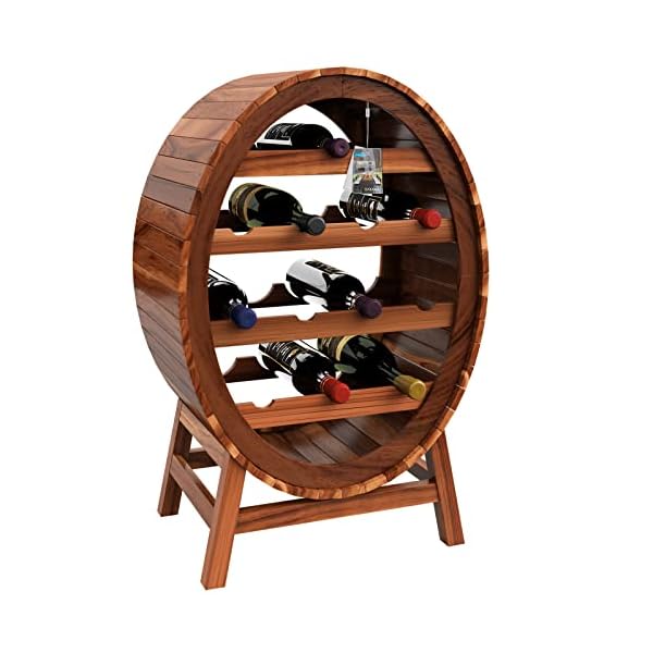 PLATZ FÜR 12 FLASCHEN – Durch die besondere Form erinnert der 90x50x30 cm große Weinflaschenhalter an ein Weinfass, dass auf 4 Etagen Platz für 12 Flaschen 0,75l und auch für 1l Ihrer besten Tropfen Wein, Champagner oder Sekt bietet.