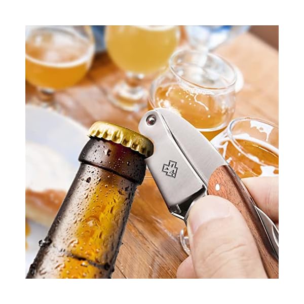 🍷【All-in-One Korkenzieher】CORKAS Kellnermesser ist ein wunderbares Werkzeug, das von den Sommeliers inspiriert wurde, vereint elegant Weinöffner, Bieröffner und Folienschneider. Die Grundstruktur besteht aus stilvollem und langlebigem 420er Edelstahl, mit einem Naturholzgriff für angenehmen Halt.