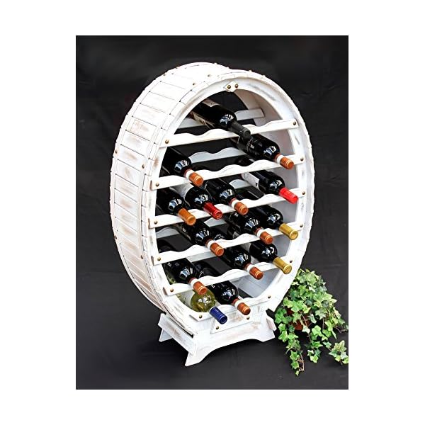 Hochwertiges Design Weinregal aus Holz gefertigt in der Form von einem Weinfass. Das Regal bietet Platz für bis zu 24 Flaschen, sowohl für 0,75 Liter als auch für 1,0 Liter Flaschen geeignet.
