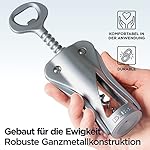 ✅ HOCHWERTIGE MATERIALIEN, DIE SICH NICHT ABNUTZEN – Wir verwenden hochwertigen Edelstahl an Stellen mit höchster Belastung und ständiger Reibung (z. B. Nieten und Spiralen), um die höchste Zuverlässigkeit zu gewährleisten. Sie können sich darauf verlassen, dass unsere Korkenzieher für Weinflaschen selbst die härtesten Weinkorken mühelos und reibungslos entfernen. Während andere Weinöffner-Bestseller eine herkömmliche Pulverbeschichtung verwenden, setzen wir eine haltbarere Galvanisierung ein, die auch nach jahrelangem Gebrauch ein brandneues Aussehen gewährleistet.