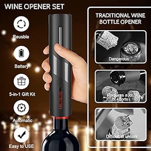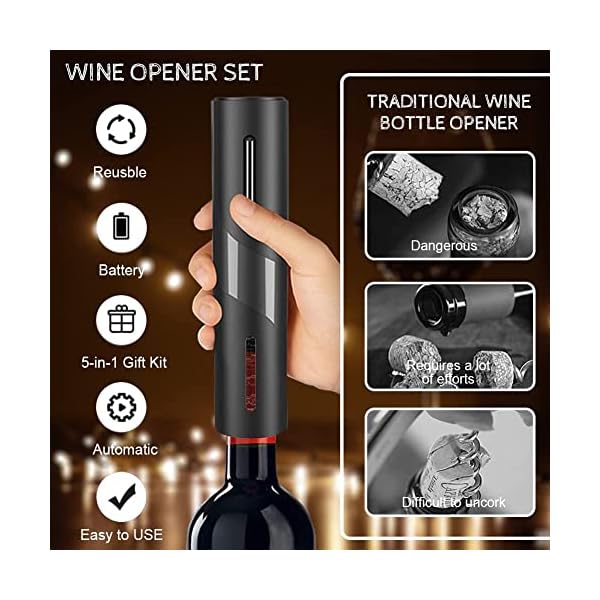 🍷 【5 In 1 Kit für Elektrischer Korkenzieher】 In dieser geschenkbox mit elektrischer weinöffner, folienschneider, weinausgießer, vakuum weinstopper und USB ladekabel. Wir bieten eine lösung aus einer hand, mit der sie Ihre lieblingsrot, weiß- oder roséweine einfach öffnen.