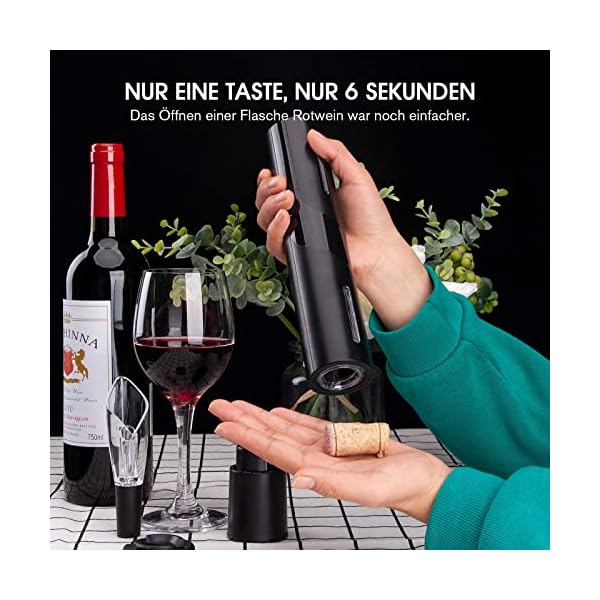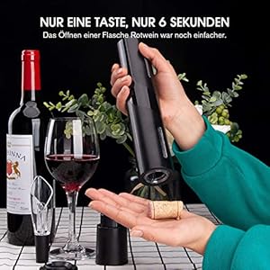 ❥[Viele Funktionen] Die Ausgießdüse besteht aus lebensmittelechten Materialien und ist ergonomisch gestaltet, sorgt für tropffreies Weingießen. Der Vakuumstopper kann das Weinaroma bewahren und den Wein frisch halten! Die Weinfolienschneidemaschine benötigt nur ein einfaches Drücken und Drehen, und der Cutter kann am Boden des Korkenziehers verriegelt und aufbewahrt werden.