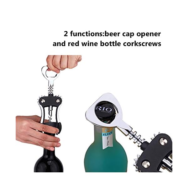 Hochwertiges Material – Dieser einfach zu reinigende Flügelkorkenzieher und WeinflaschenÃffner besteht aus Zinklegierung und Edelstahl-Korkenzieher für Stärke und Flexibilität, mit Soft-Touch-Panels für Komfort und einfachen Halt.
