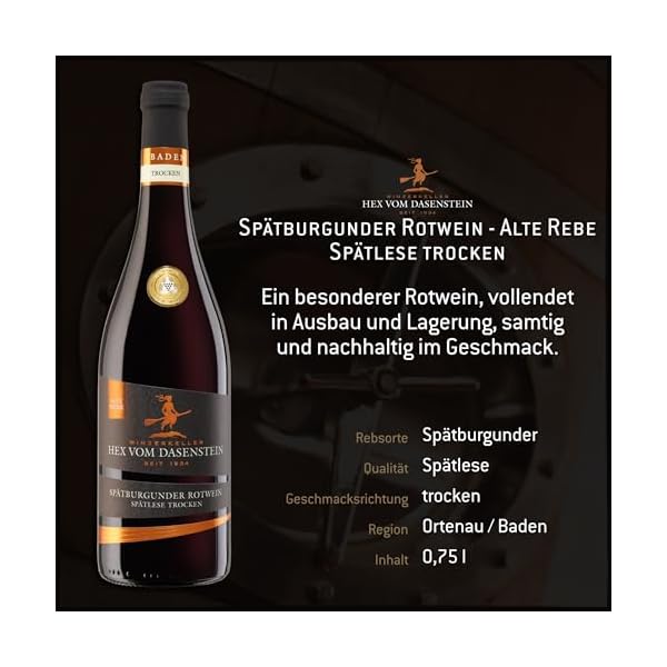 LIEFERUMFANG: Hex vom Dasenstein Spätburgunder Rotwein Spätlese trocken (3 x 0,75l) – Naturkork Verschluss – hochwertiger Essbegleiter passend zu Fleisch- und Wildgerichten, Pasta und kräftigem Käse