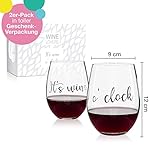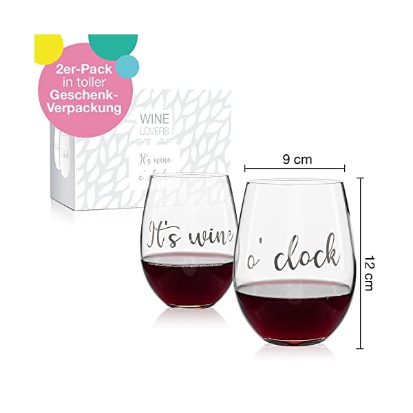 MEGA GRÖSSE – ILP 2er Weingläser Set, je 500 ml, mit lustigem Print, Weingläser 1x „It’s wine“, 1x „o’clock“ als Geschenk Ostern