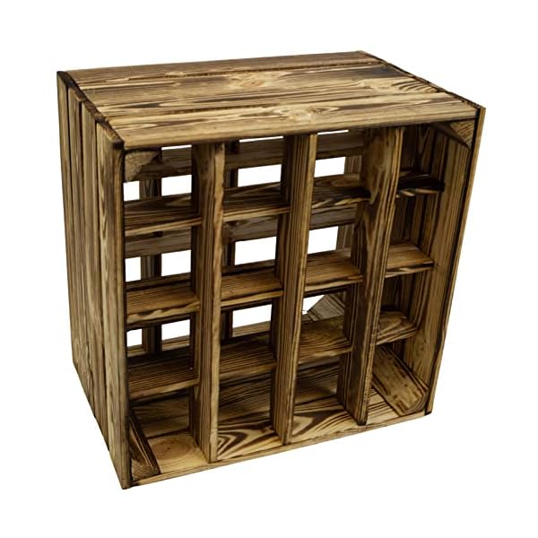 Dieses schöne neue geflammte Weinregal hat für mehrere Flaschen Platz. Bitte berücksichtigen Sie, dass die Kisten durch das flambieren des Holzes, die Kiste leicht abfärben kann. Alternativ bieten wir nun das bereits lackierte Regal an, welches sofort EInsatzbereit ist.