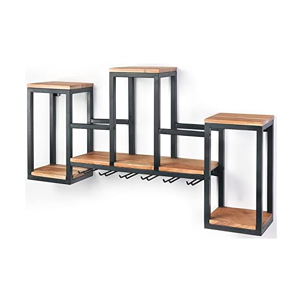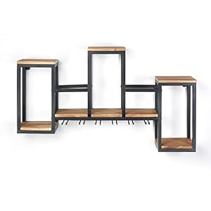 Weinregal zum Aufhängen aus schwarzem Metall und Mangoholz von Kobolo. Das schlichte und moderne Design fügt sich perfekt in viele Einrichtungsstile ein. Hiermit können sie Ihren Wein stylish in Szene setzen und sorgen für ein optisches Highlight in Ihrer Wohnung. Das Wandregal eignet sich als ausgefallenes Geschenk oder um sich selbst eine Freude zu bereiten – Lieferung ohne Deko. Länge 104cm x Breite 22cm x Höhe 52cm