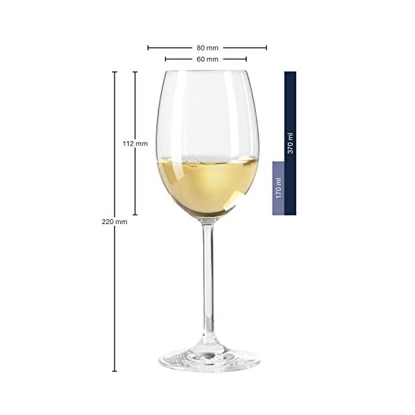 Lieferumfang & Maße: 6 Wein-Kelche, Maße pro Wein-Glas: 220 x 80 x 80 mm (HxBxT), 173 g, 170 ml Nutzinhalt, 370 ml randvoll