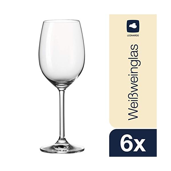 Leonardo Daily Weißwein-Gläser 6er Set, Kelch mit Stiel, spülmaschinenfeste Wein-Gläser, Höhe 22 cm, 370 ml, 063315
