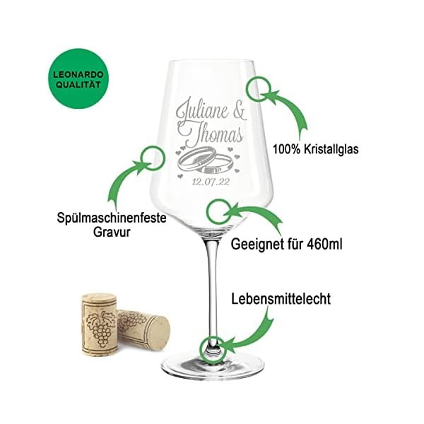 💎 100% LEONARDO – Qualitätsglas trifft hochwertige Lasergravur. Jedes unserer Weingläser stammt aus dem Traditionshaus Leonardo. Die Marke steht für glasklare sowie feinste Verarbeitung. Dank innovativer TEQTON High-Tech-Formel besonders robust, stoßfest und selbstverständlich spülmaschinengeeignet