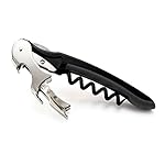 Hochwertige Korkenzieher wie dieser verfügen über einen 2-stufigen Hebelmechanismus, womit der Korken ganz leicht aus der Flasche gezogen werden kann. Durch den verlängerten Hub kann die Spirale immer in der Senkrechten gehalten werden, bis der Korken aus der Flasche gleitet.