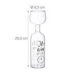 Details: Große Gag-Weinflasche aus Glas mit Aufsatz und Spruch – H x D ca. 29,5 x 8,5 cm – 750 ml