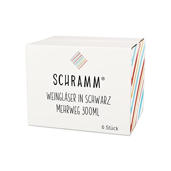 Schramm Mehrweg Weingläser in schwarz -wählbar 6, 12, 24 oder 48 Stück -Weingläser aus unzerbrechlichem, BPA-freiem Kunststoff -ideal auf Reisen, für Junggesellenabschiede, Fasching, Hochzeiten, Geburtstage, Partys geeignet -auch im Outdoorbereich optimal einsetzbar -beim Grillen, beim Camping, auf Festivals oder am Strand -Füllmenge ca.: 300 ml -Maße ca.: -Höhe: 19cm -Fuß: ø 7cm -Öffnung: ø 7,5cm -bei diesem Angebot handelt es sich um ein Auswahlangebot