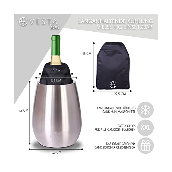 VERBESSERTE KÜHLUNG – In unserem Getränkekühler Set kombinieren wir den Weinkühler zusätzlich mit einer Kühlmanschette. Dadurch wird Dein Wein, Sekt oder Champagner effizient & langanhaltend gekühlt.