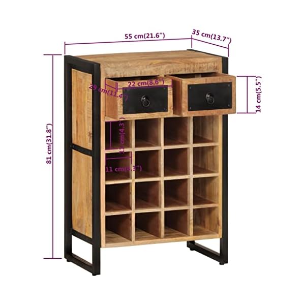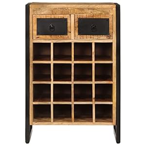 Raues Mangoholz: Dieses Weinregal besteht aus massivem Mangoholz, einem Hartholz mit dichter Maserung. Massives Mangoholz ist nicht nur äußerst belastbar, sondern auch verschleißfest.