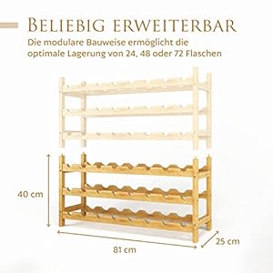 🥂 𝗕𝗘𝗟𝗜𝗘𝗕𝗜𝗚 𝗘𝗥𝗪𝗘𝗜𝗧𝗘𝗥𝗕𝗔𝗥 – Das Weinregal | Flaschenregal ist stapelbar und kann dank der modularen Bauweise beliebig erweitert werden. [zum Beispiel 24, 48, oder 72 Flaschen] Dies ist auch nachträglich noch ohne Probleme möglich.