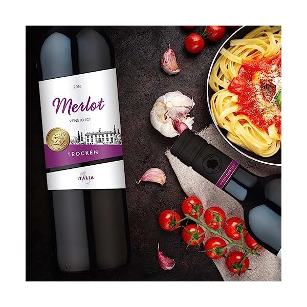 Rotwein Wein-Genuss Merlot Veneto IGT, trocken, im sortenreinen 6 Flaschen (6×0,75l) Weinpaket. Dieses Weinpaket enthält 6 VINOX Winecards mit Tipps vom Sommelier.