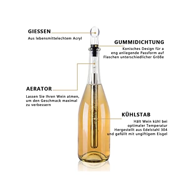 【Extrem langlebig】Premium-Edelstahl und Acryl, halten das Weinaroma auf dem optimalen Niveau. Die Größe passt in alle Standard-Weinflaschen und ist leicht zu verstauen. Sie müssen sich nicht mehr mit nassen Weinflaschen oder der Unordnung herumschlagen, die bei der Vorbereitung und Verwendung eines Eiskübels entsteht.