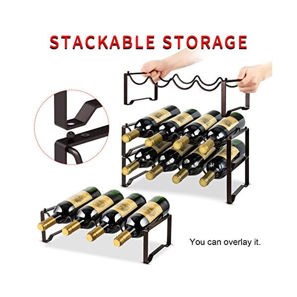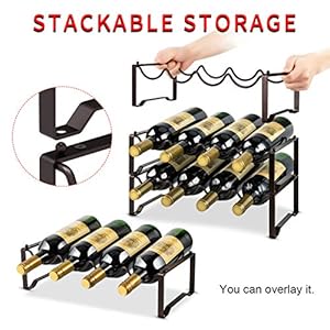 【Stapelbar und abnehmbar】 Freistehendes vertikales Schichtdesign schafft mehr Platz. Der Weinhalter kann auf mehrere Einheiten gestapelt werden, um die Lagerung des Raums zu maximieren, oder unabhängig verwendet werden. Mehr zusätzliche Stufe, mehr zusätzliche Kapazität.