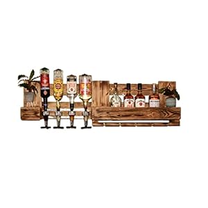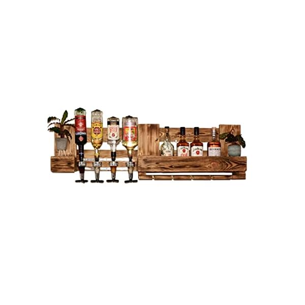 Lieferumfang: 1 x rustikales Schnapsregal/Weinregal, 1 x Schnaps-Weindosierer für 4 Flaschen